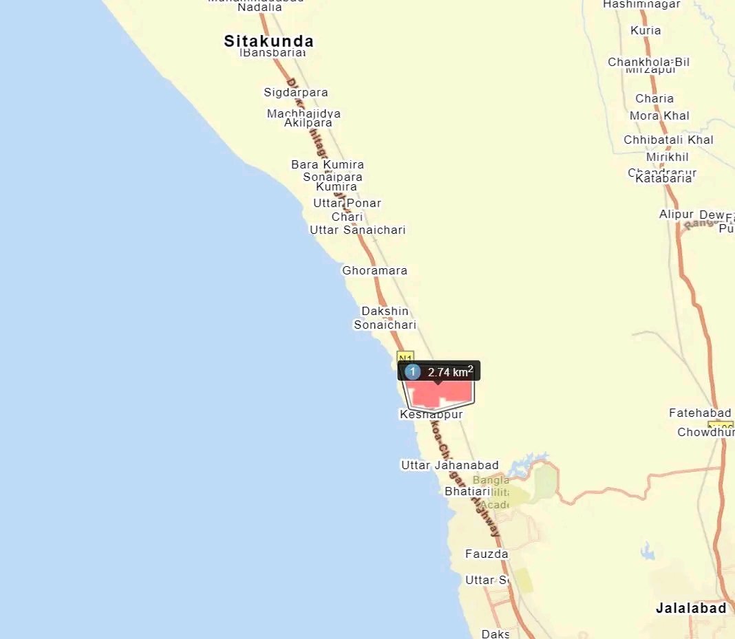 ঐ ম্যাপ থেকে দেখছি, প্রায় ২.৭৪ বর্গ কিলোমিটারের কিছু কম এলাকা জুড়ে আগুন জ্বলেছে।