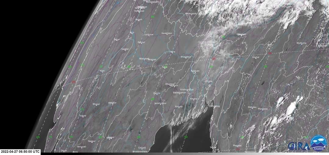চতুর্থ ছবিটি ৩য় ছবিটির একটি ক্লোজআপ অবস্থা যেখানে দেখা যাচ্ছে ভারতের পশ্চিমবঙ্গ ও বাংলাদেশের আকাশে পছন্দ গরম ও শুষ্ক বাতাসের উপস্থিতি।