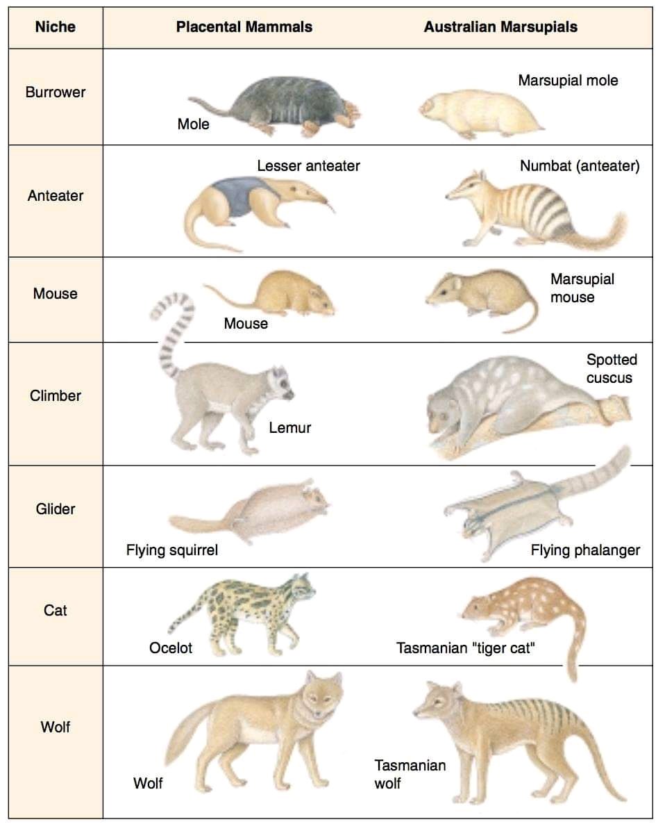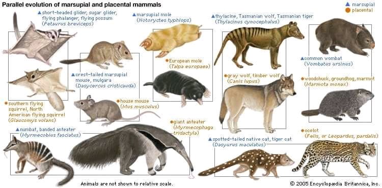 অষ্ট্রেলিয়া মহাদেশ যখন আলাদা হয়ে গেল তখন দক্ষিণ আমেরিকা ও আফ্রিকার প্রাণীগুলো পেটের ভেতরে অমরার সাহায্যে বড় করতে লাগলো, ওদিকে অষ্ট্রেলিয়ায় যারা গেলো তারা পেটের বাইরে থলের মধ্যে, যাদেরকে বলা হয় মারসুপিয়াল। আপনি এই ছবিটা দেখেন, প্লাসেন্টাল আর তাঁদের মারসুপিয়াল কাউন্টারপার্ট!”