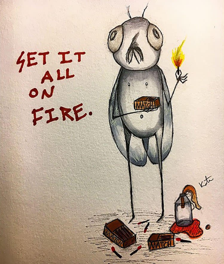 “…ডাক্তার আমাকে যেই ওষুধ দিয়েছিলেন সেগুলো বেশ কার্যকরী। আমি পরিস্থিতি আরো নিয়ন্ত্রণ করতে পারছিলাম। ওদের দেখার জন্য এখন আর আমাকে চোখ বুঝতে হয় না। আমার নুডুলসের বাটিতে, লতানো গুল্মে, আমার চুলে সবখানেই তাদের স্বাচ্ছন্দ্যে দেখতে পাই। তারা অনেকটা… বিড়ালের মত। পোষা৷ তবে বুদ্ধিশুদ্ধি একটু কম। আমার মনে হয় তারা আমাকে তাদের কাছে নিয়ে যেতে চায়। বাথরুমের আয়নায় এখন আর নিজের প্রতিবিম্ব দেখি না। শুধু দেখি বিশাল এক পোকা বা কৃমি আমার দিকে চেয়ে আছে। দুলছে, ডান থেকে বামে। বাম থেকে ডানে। তাদের আহবানে সাড়া দিতে খুব মন চায়। কিন্তু তাদের দুনিয়ায় আমি মানুষ হিসেবে কী করে যাই? আমাকেও তাদের মত কিম্ভুতাকৃতির সাদা পোকা হয়ে যেতে হবে না?…”